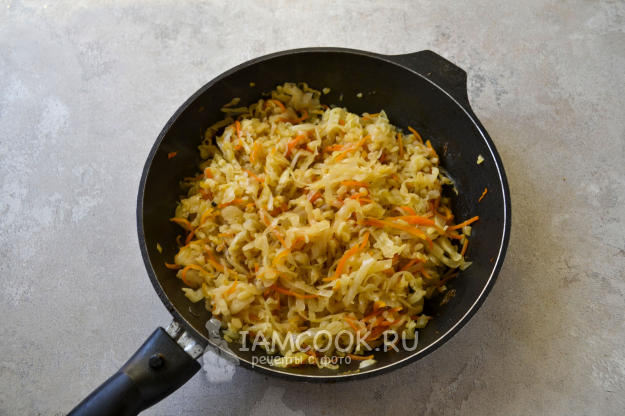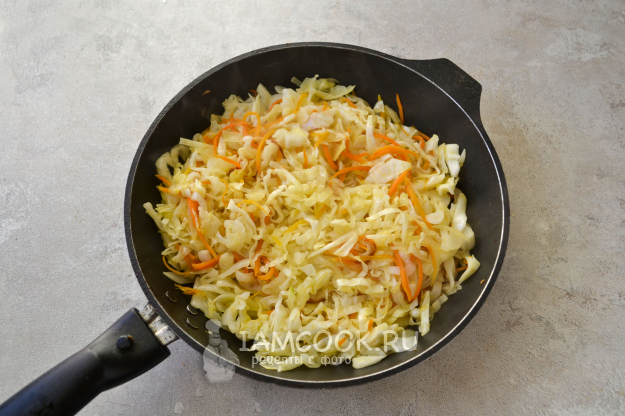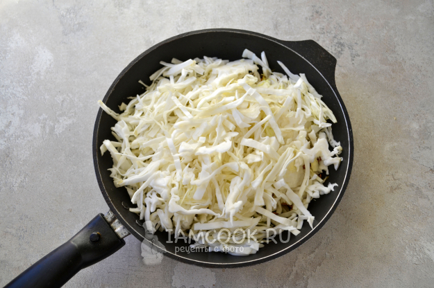 Положите нарезанную тонкой соломкой капусту.