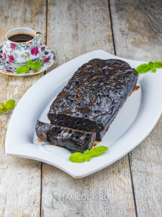 После того как протеиновый брауни впитает в себя всю глазурь, вынимаем его из формы и выкладываем на блюдо.