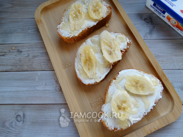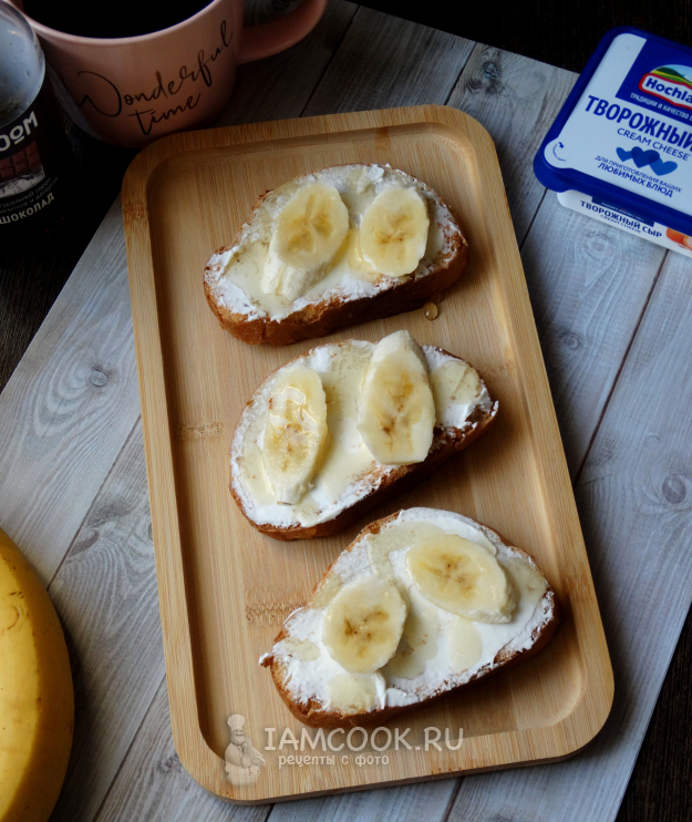 Никогда ранее не совмещала фрукты и ягоды с хлебом. Хотя видела уже много вариаций различных бутербродов, брускетт и т.д., мне казалось это каким-то странным)). Решила все же попробовать и выбор пал на банан.