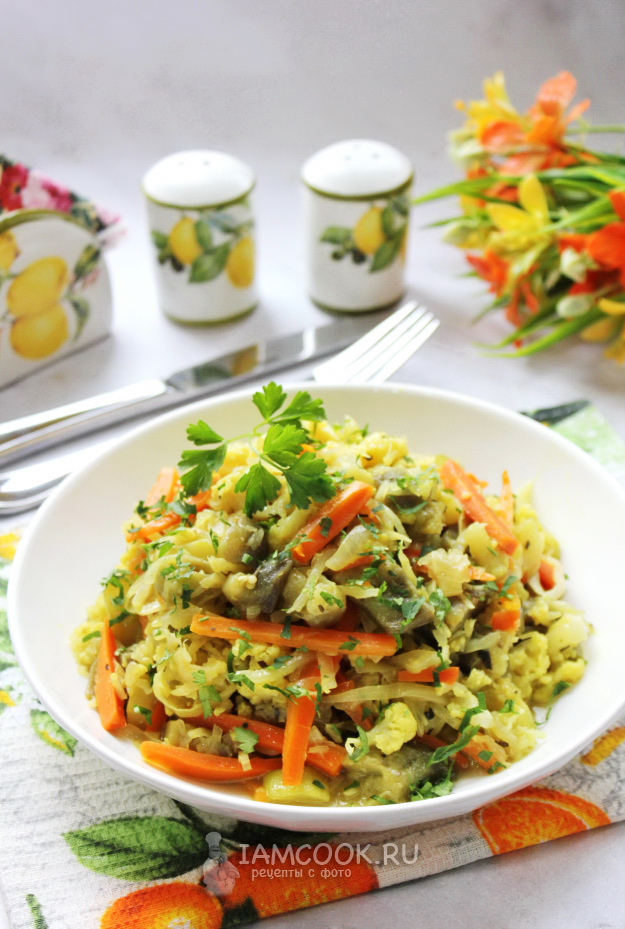 Овощное рагу с баклажанами и капустой готово. Вкусно в теплом и в холодном виде.