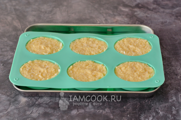 Полученную массу разложите по силиконовым формочкам, уплотните хорошенько.