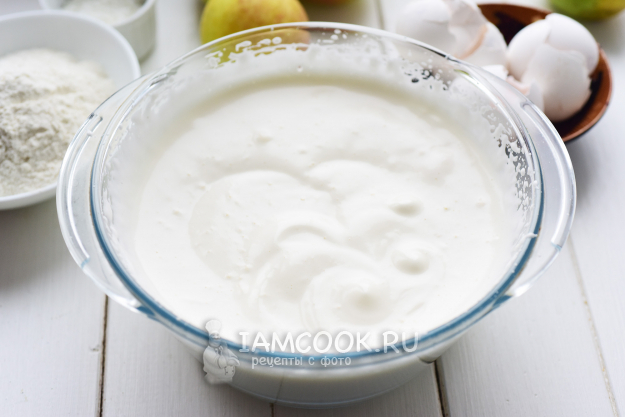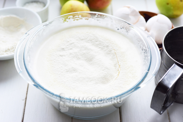 К яичной массе просеем муку.
