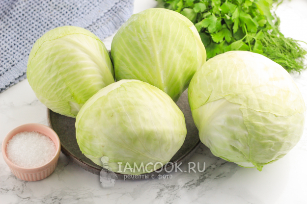 Продукты для приготовления квашеной капусты кочанами на зиму - перед вами!