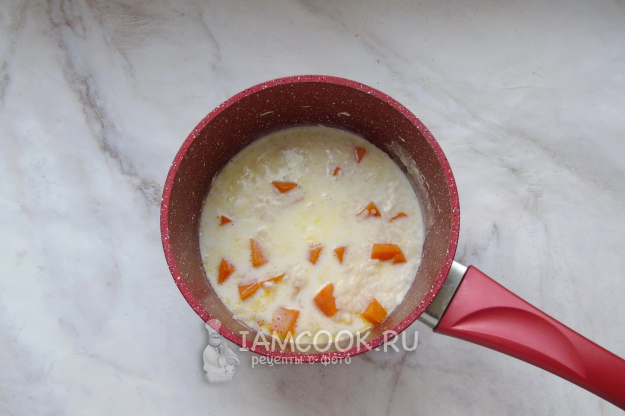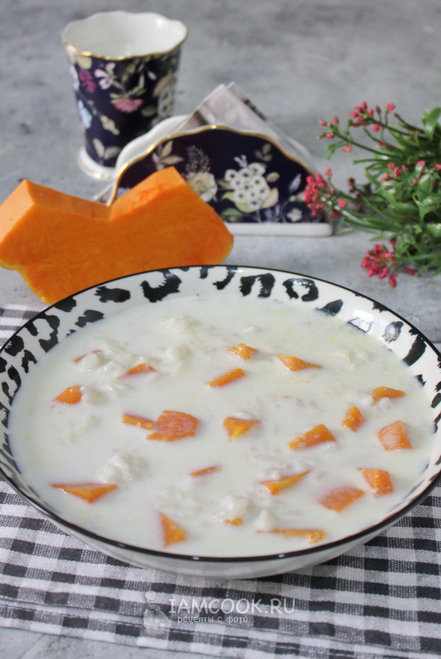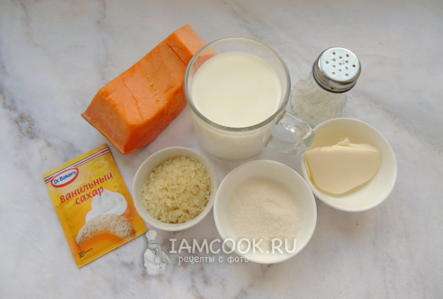 Соберите ингредиенты для приготовления молочного супа с тыквой.