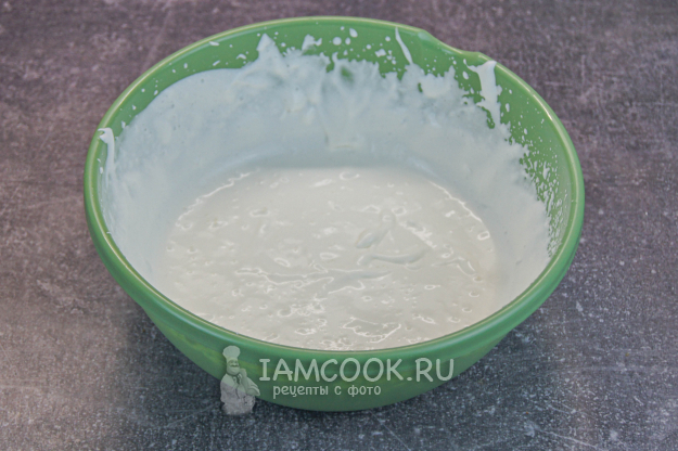 Отдельно в сухой и чистой емкости взбиваем сливки до мягких пиков.