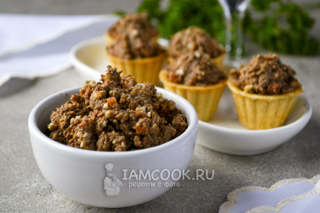 Паштет из куриной печени и сердечек готов к подаче. Можно поджарить кусочки белого хлеба или багета, намазать паштетом и подавать к столу со свежими овощами.