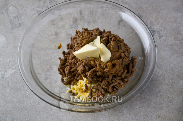Следом прокрутите обжаренные ингредиенты со сковороды.