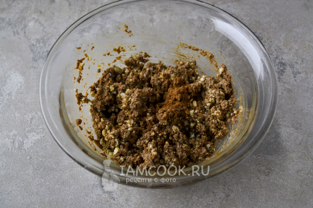 Добавьте мускатный орех и черный молотый перец. Еще раз тщательно перемешайте все ингредиенты. По желанию, чтобы придать паштету полностью однородную текстуру без крупинок, пюрируйте блендером.