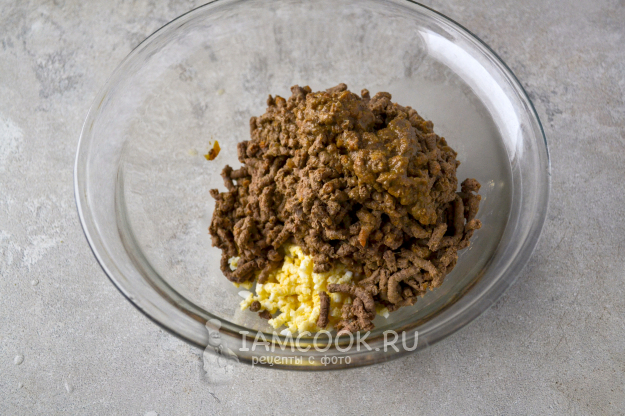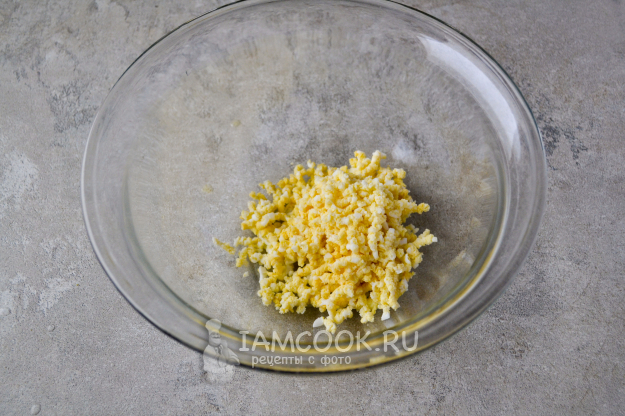 Вареные яйца очистите и прокрутите на мясорубке с мелкой решеткой.