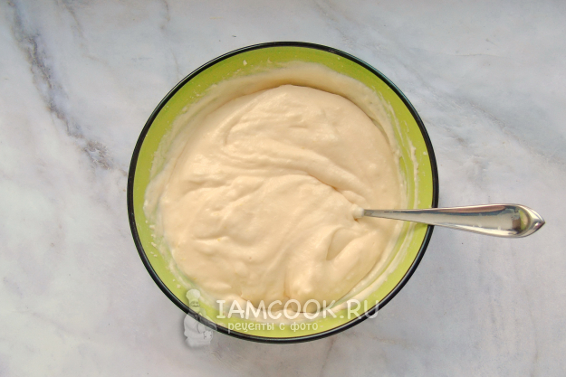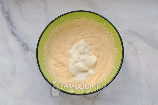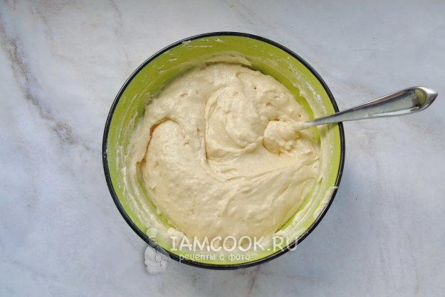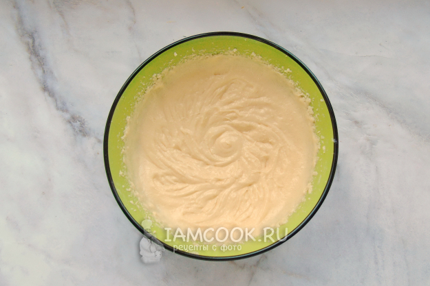 По одному добавьте яйца, каждый раз взбивая. Получится густая, пышная масса.