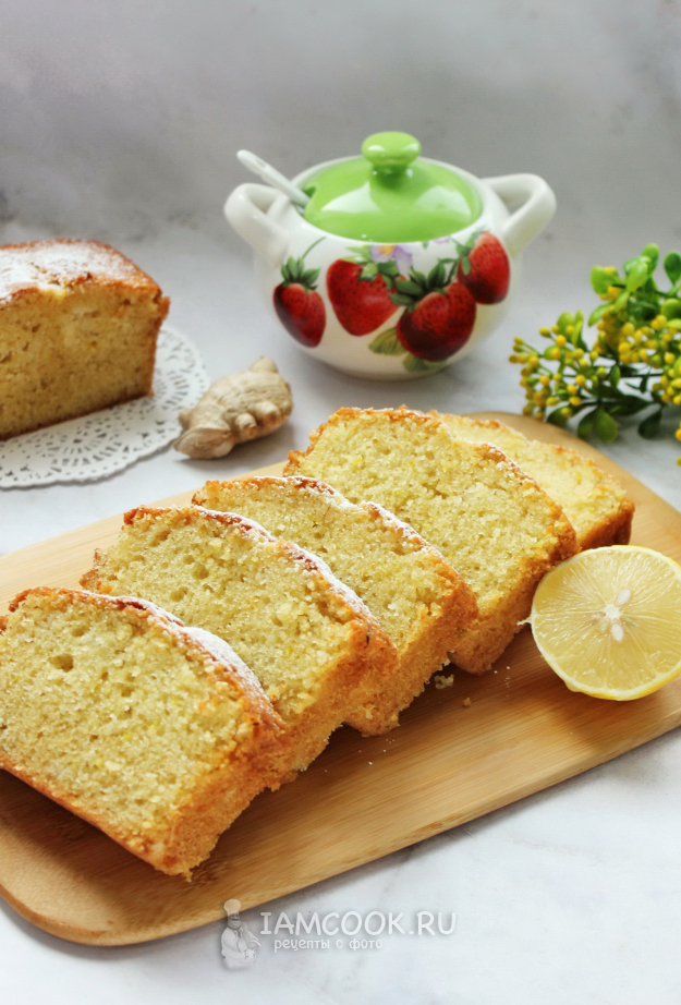 Выпекайте лимонно-имбирный кекс в духовке, заранее разогретой до 160-165 градусов, 55-60 минут.