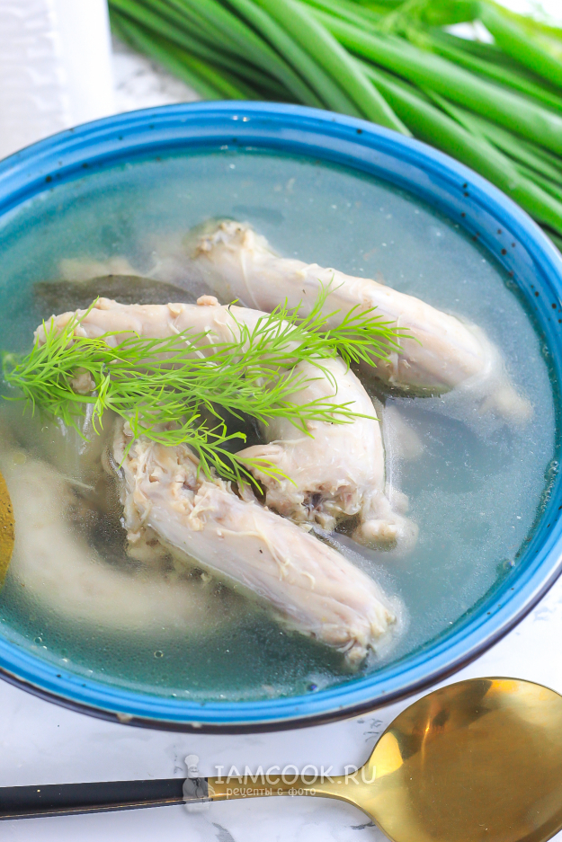 Бульон из куриных шей полностью готов! Если он получился мутноватым, то просто процедите его через двойной слой марли или ситечко с мелкими ячейками. Выложите куриные шейки в тарелку и залейте бульоном. К столу подайте блюдо горячим.