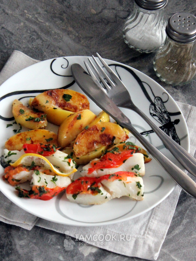 Блюдо готово - поджаристая, но мягкая картошка и очень вкусная рыба палтус в данном случае - с лёгким ароматом лимона и петрушки.