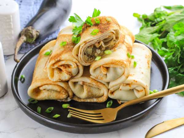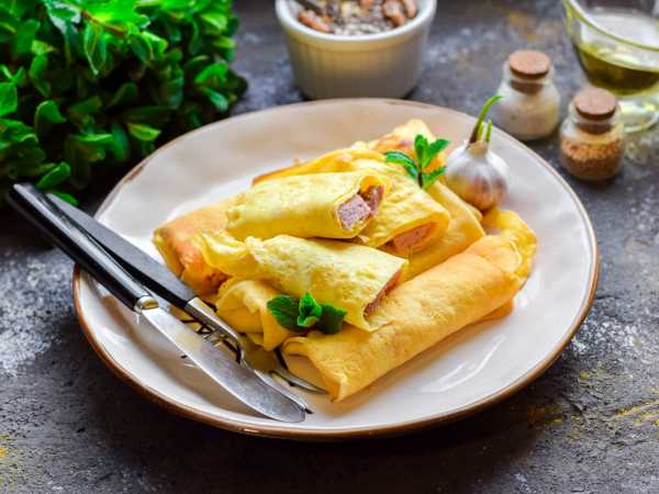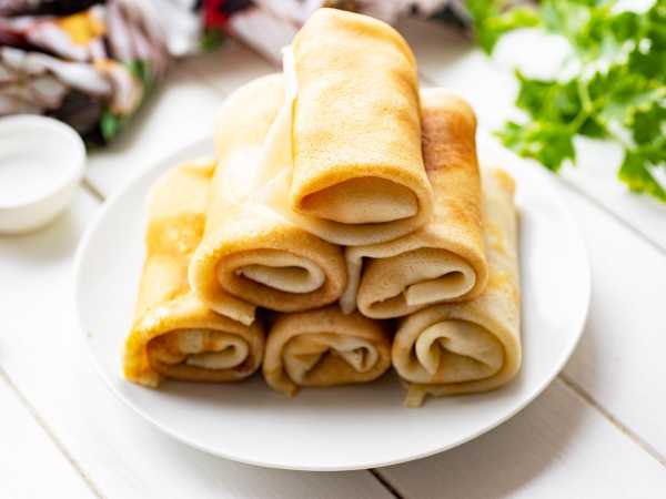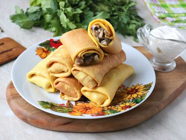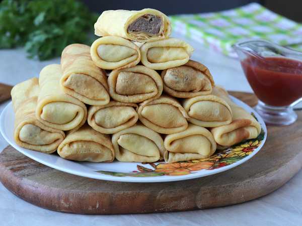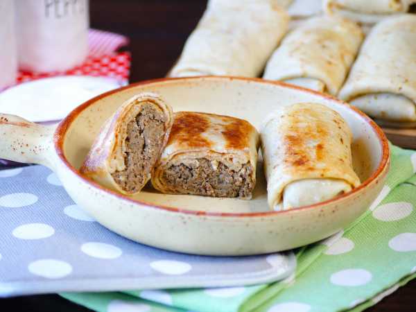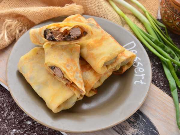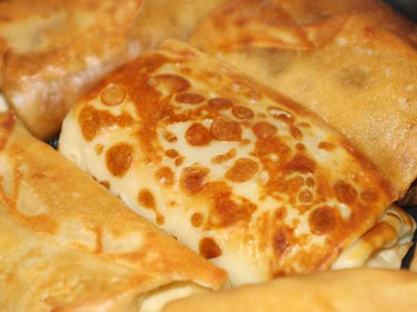 Блинчики с начинкой сверните трубочкой. Таким образом сверните и остальные блины, пока не закончится начинка.