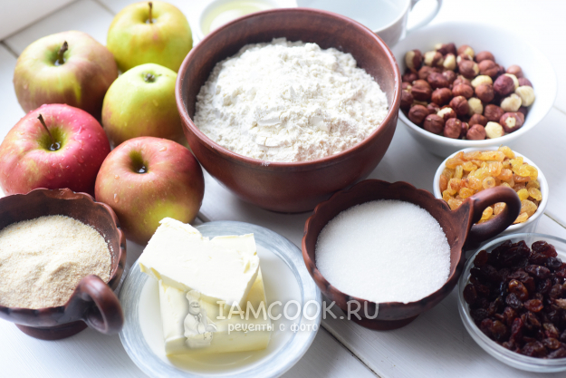 Подготовим все ингредиенты для штруделя с яблоками, изюмом и орехами. Фундук подсушим на противне в духовке при температуре 160 градусов в течение 15 минут. Яблоки помоем. Изюм помоем и просушим на бумажных полотенцах.