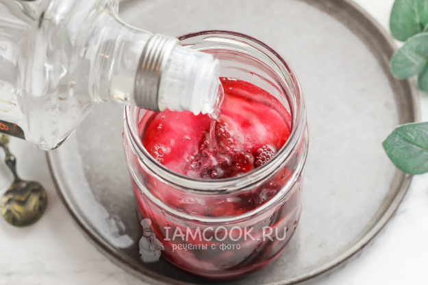 Влейте водку или разбавленный до 40% самогон до верха емкости.