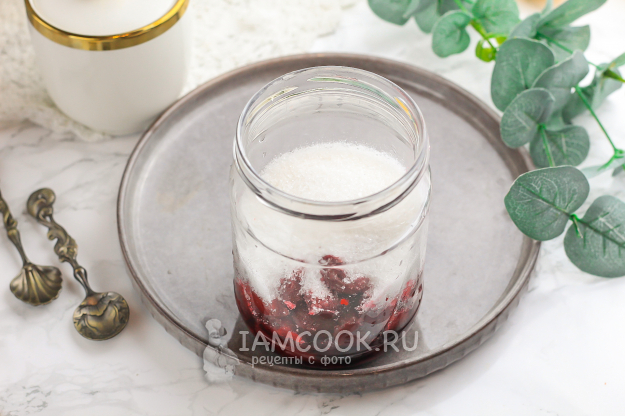 Всыпьте сахарный песок. По желанию можно добавить немного ванильного сахара для усиления вкуса и аромата напитка. Я добавляю сахар сразу, но вы можете добавить его после удаления использованных ягод - настойка получится в любом случае!