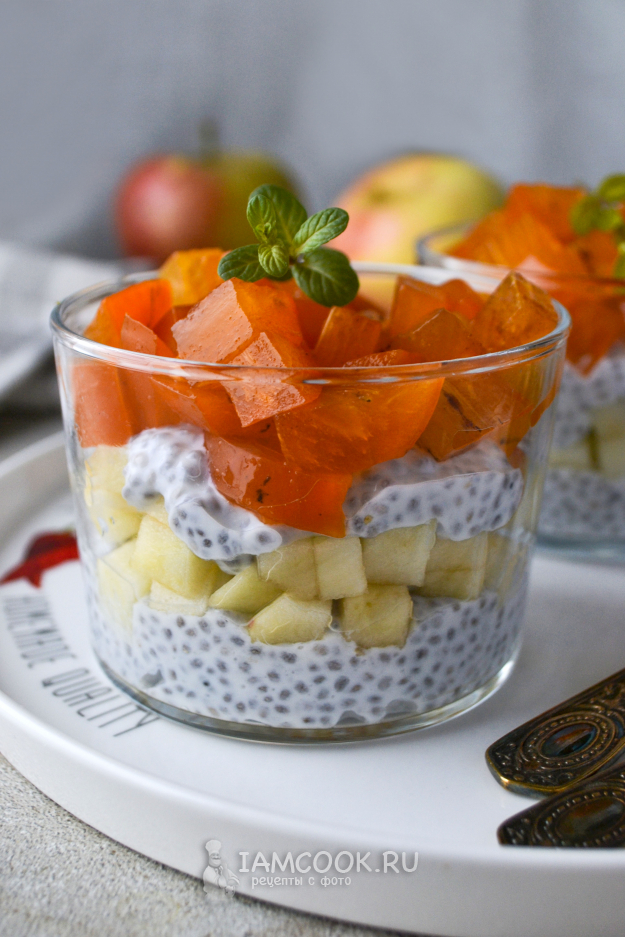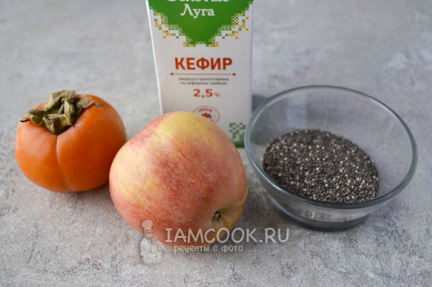 Соберите продукты для приготовления ПП десерта с яблоками, кефиром и семенами чиа.