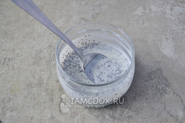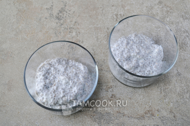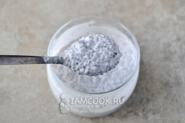 Через несколько часов семена чиа хорошо набухнут в кефире. Получается густая, желеобразная масса.