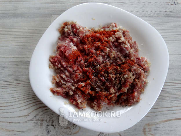 Посолить, поперчить, приправить паприкой (1 ч.л.). Тщательно перемешать.