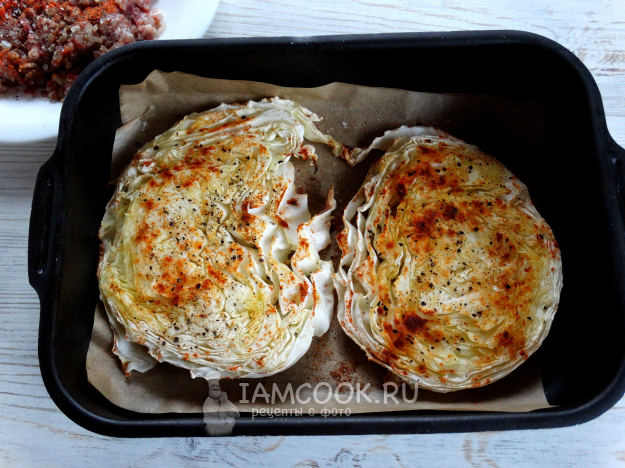 Стейк из капусты с фаршем готов.