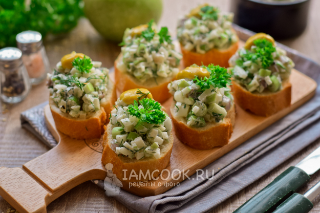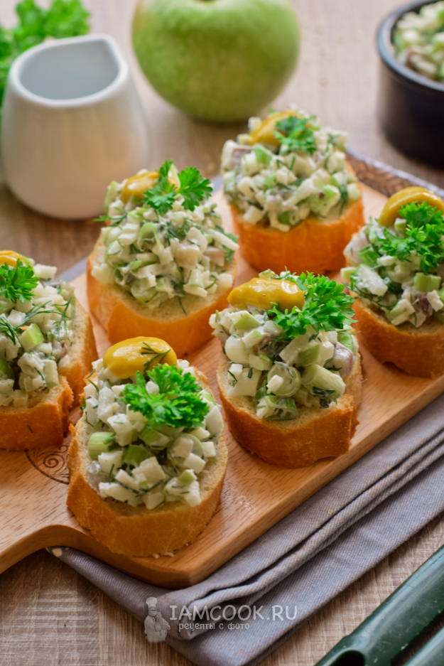 Вот и все, простые и аппетитные бутерброды с селедкой и яблоком готовы к подаче.