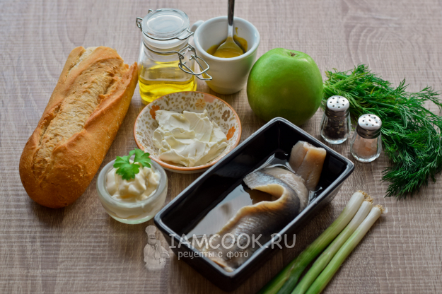 Подготовьте все продукты для бутербродов с селедкой и яблоком. Сельдь предварительно нужно филетировать и тщательно зачистить от костей. Также для бутербродов можете использовать уже готовое филе селедки. Яблоко выберите зеленое, кисло-сладкое.