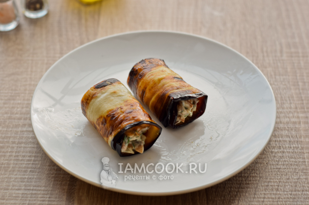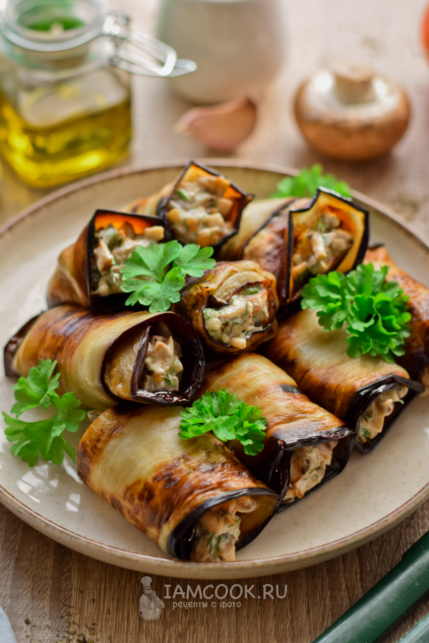 Рулетики из баклажанов с грибами готовы. Подавайте к столу.