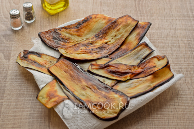 Все жареные баклажаны выложите на кухонные бумажные полотенца, чтобы убрать излишки масла.