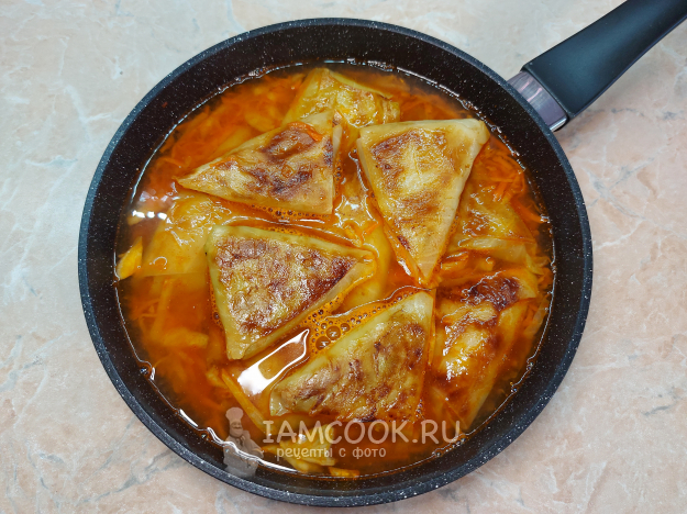 Заправить хвостик внутрь, ещё раз пальцами распределить начинку и треугольник готов.