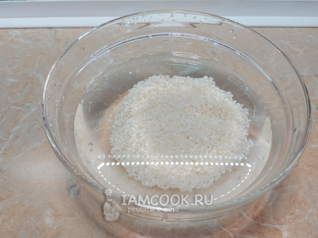 В первую очередь надо подготовить рис, промыть до прозрачной воды.