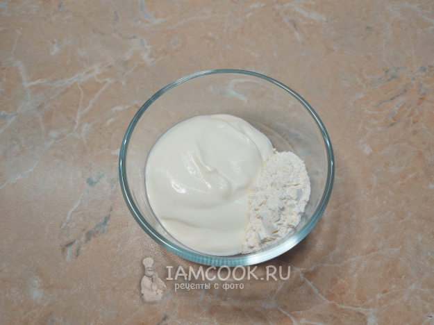Спустя 30 минут в отдельной посуде смешать сметану и муку, хорошо перемешать вилкой.