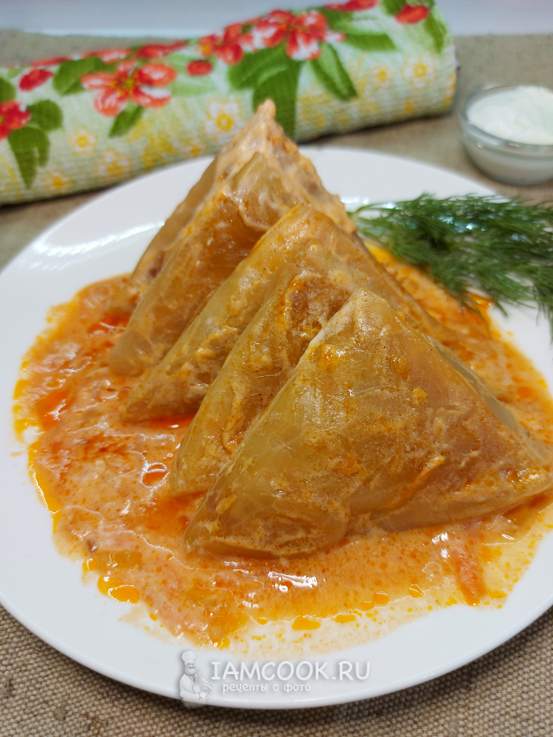 Влить сметанную смесь в голубцы и тушить ещё 10 минут.