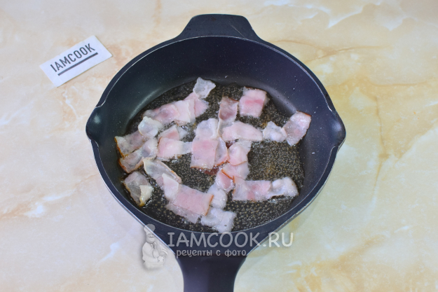 Обжарьте нарезанные ломтики бекона в течение 1-2 минут.