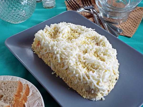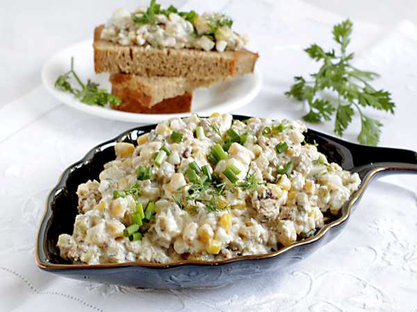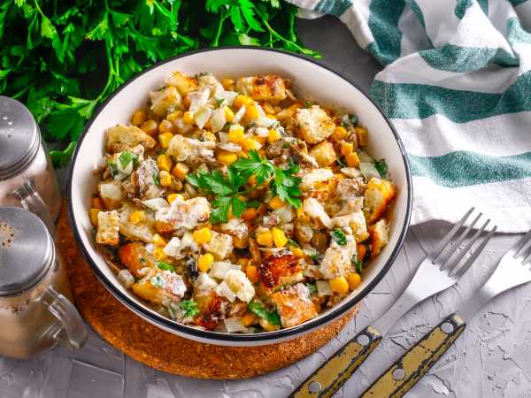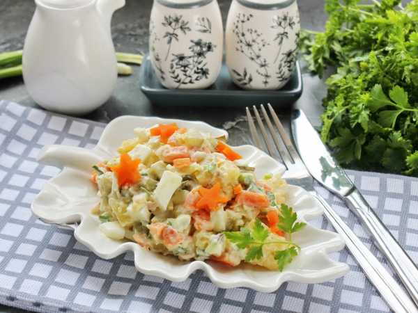 Салат с картошкой и копченой рыбой готов. Подавайте к столу.