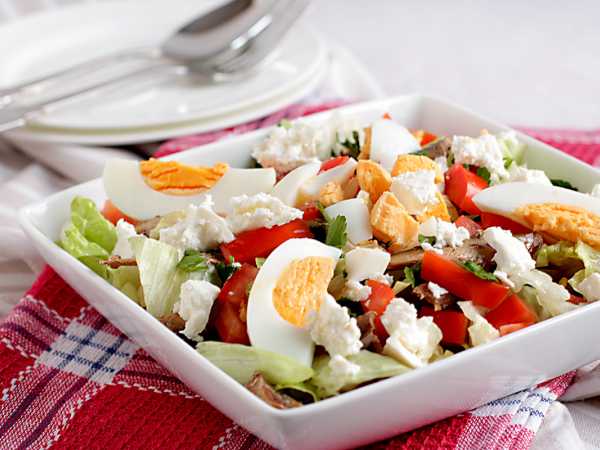 Лук нарежьте полукольцами, сбрызните лимонным соком и оставьте на 10 минут, чтобы лук немного замариновался. Куриное яйцо отварите вкрутую - 10 минут, очистите и нарежьте дольками.