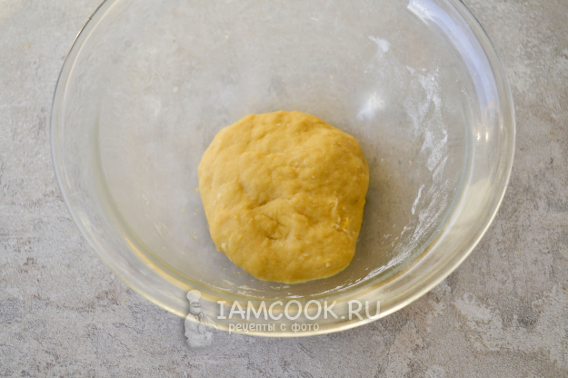 Затем замесите тесто руками. Мне потребовалось 160 г муки, чтобы получилось упругое, не прилипающее к рукам тесто. Затяните миску пищевой пленкой и оставьте тесто для отдыха на полчаса.