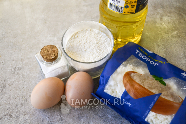 Соберите продукты по списку для приготовления равиоли с творогом и зеленью.