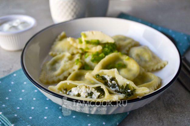 Для варки вскипятите чуть подсоленную воду и опустите в сотейник заготовки. После закипания сделайте огонь умеренным и варите равиоли с творогом и зеленью 4-5 минут.