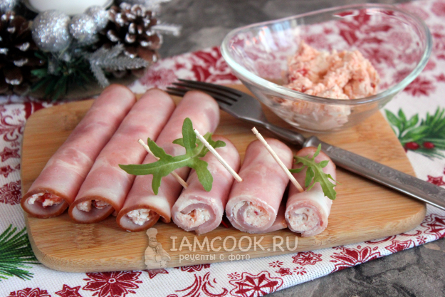 Скрутите в рулетик, и закуска готова.