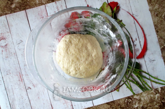 Смажьте руки растительным маслом и замесите очень мягкое тесто. Оно прямо липкое и тянучее, но всё-таки не забивайте его лишней мукой. Оставьте тесто на подъем при комнатной температуре, укройте и оградите от сквозняка.