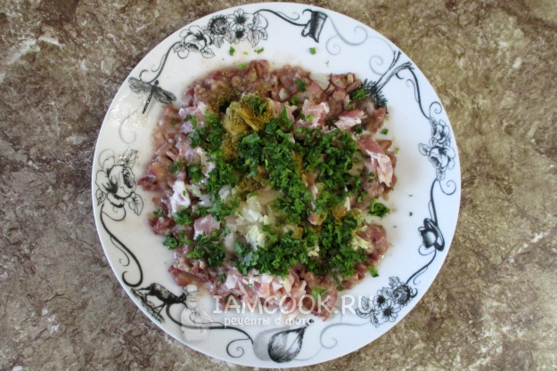 Посыпьте смесью хмели-сунели и свежей рубленой кинзой. Перемешайте, и начинка для двух лобиани готова.