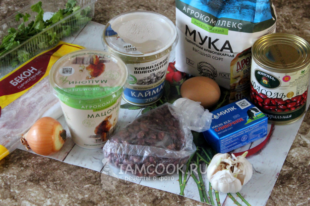 Для варианта лобиани с беконом подготовьте ингредиенты по списку к рецепту.