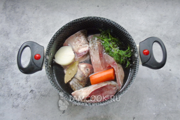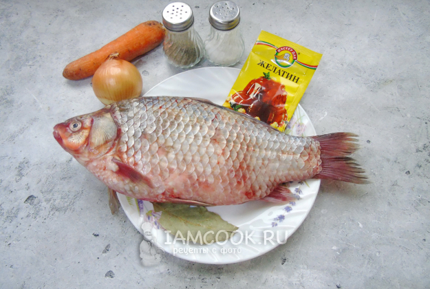 Соберите ингредиенты для приготовления заливного из карася.