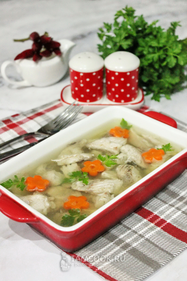 Залейте рыбным бульоном с желатином.