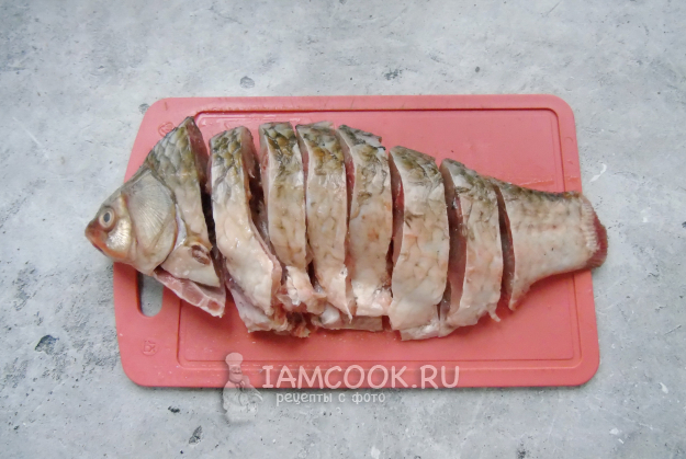 Нарежьте карася на кусочки.