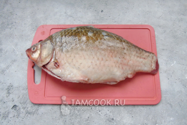 Рыбу очистите от чешуи. Выпотрошите, обрежьте плавники, уберите жабры. Хорошо помойте внутри и снаружи.