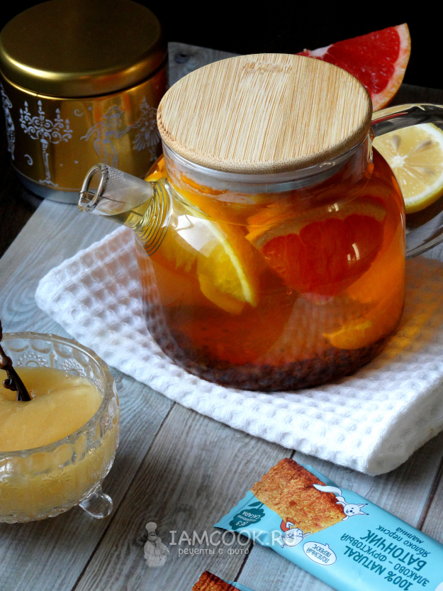 Холодными зимними вечерами, а то и днями, есть потребность в употреблении горячего напитка. Чай с добавлением разнообразных цитрусовых, очень ароматный и бодрящий. Отличный рецепт для семейного чаепития!
