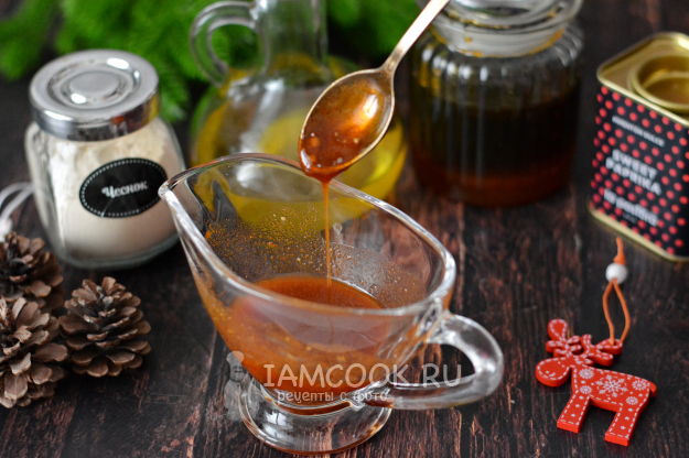 Теперь придадим цвет нашей буженине. Для этого приготовьте глазурь, смешав растительное масло, мёд, сладкую паприку и чесночный порошок.