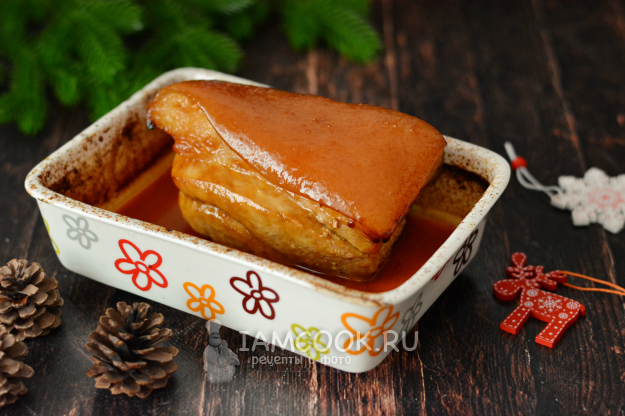 Отправьте буженину обратно в духовку примерно на 15-20 минут, чтобы она заколеровалась. За это время еще два-три раза доставайте её из духовки и намазывайте слой за слоем глазурь.